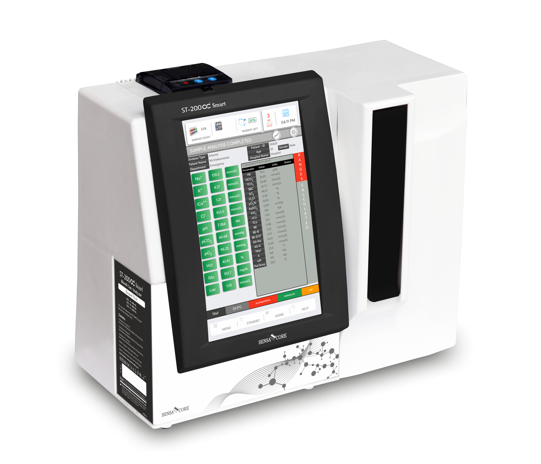 Анализатор газов крови Sensacore ST-200 CC Smart — гибридное устройство нового поколения. Значительный шаг вперед в области эффективности, точности и возможности подключения для анализа важнейших газов крови и электролитов, поскольку сочетает в себе обычные долговечные электроды ISE, не требующие технического обслуживания, и технологию определения гематокрита, метаболитов (глюкозы и лактата) и растворенного кислорода с использованием толстых пленок. Благодаря чему обеспечивает соотношение производительности и цены между анализатором электролитов и газов крови. То есть данный анализатор газов крови / электролитов/метаболитов может работать как анализатор электролитов и простой анализатор «подключи и работай».